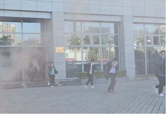 “報告!三樓發(fā)現(xiàn)火災(zāi)警報!”按照演練方案,工作人員在市水務(wù)調(diào)度中心三樓“發(fā)現(xiàn)”火情,并按下消防報警按鈕。隨后消防控制室工作人員向演練指揮組長報告火情,啟動市水務(wù)調(diào)度中心大樓消防應(yīng)急預(yù)案。消防控制室立即拉響大樓消防警報,滅火消防小組火速趕往起火點進行滅火。與此同時,在濃烈的煙霧和刺耳的警報聲中,各樓層員工迅速從樓梯有序疏散至一樓空曠地方。