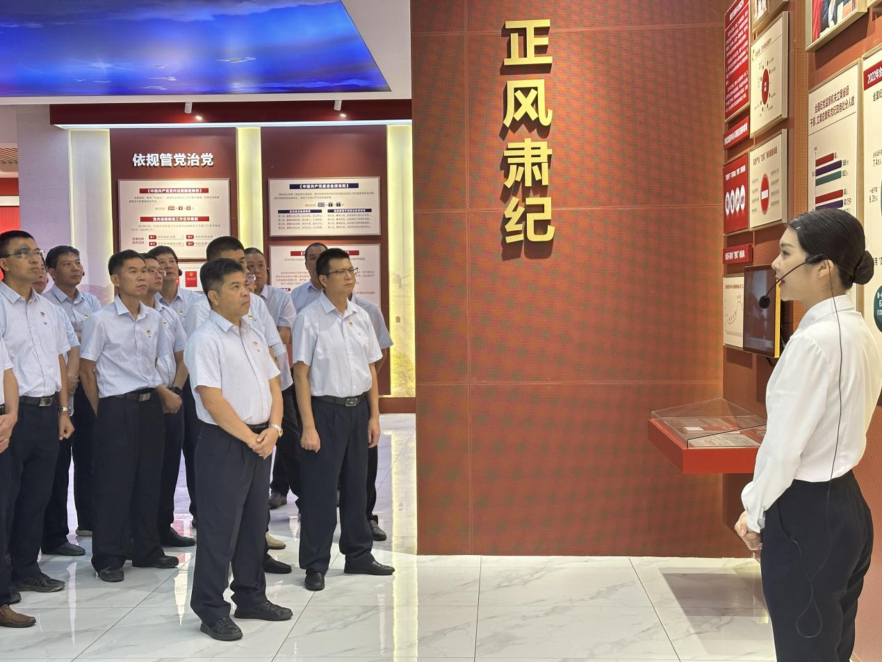 參觀活動結(jié)束后,黨委書記、董事長鄭海強(qiáng)同志帶領(lǐng)黨員干部重溫入黨誓詞,大家面向黨旗、高舉右拳,以洪亮的聲音喚起入黨初心,銘記責(zé)任擔(dān)當(dāng)。此次參觀學(xué)習(xí)活動,讓大家對正風(fēng)、肅紀(jì)、促發(fā)展有了更深入的理解和認(rèn)識,紛紛表示要以廉政文化教育基地為教材,以時代楷模為榜樣,以反面教材為警鐘,自覺做到克己奉公、廉潔自律,永葆共產(chǎn)黨人清正廉潔的政治本色。